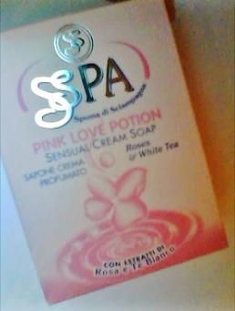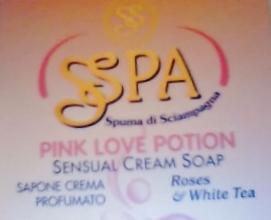 Ho acquistato due confezioni da 125 gr cadauna a soli 99 cents di questo sapone cremoso alla rosa e tè bianco. Appartiene alla linea SPA di Spuma di Sciampagna, che mira a ricreare in casa le sensazioni di piacevolezza e relax delle cure termali. L'odore è infatti spettacolare: sa molto di rosa, ma è discreto, buonissimo. Il sapone si presenta in forma ovoidale, è schiacciato e lungo ed è color rosa.